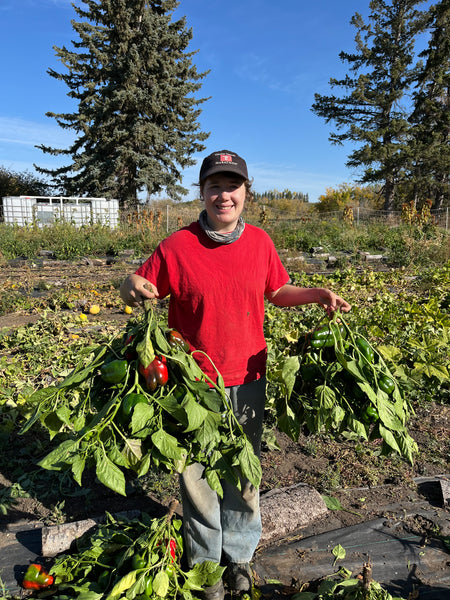 A wonderfully early, reliable, and large sweet red bell pepper. Plants are incredibly strong, sturdy, and productive. These are great for northern short growing seasons. 2025 was our first year growing these and they did not disappoint! Our original seed came from Knapp Heritage Seeds, passionate pepper people and seed growers in Saskatchewan.